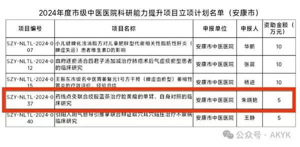 立項二:藥線點灸聯(lián)合絞股藍(lán)茶在黃素瘤應(yīng)用項目獲陜西省中管局市級中醫(yī)醫(yī)院科研能力提升項目(朱曉艷、袁銘悅)