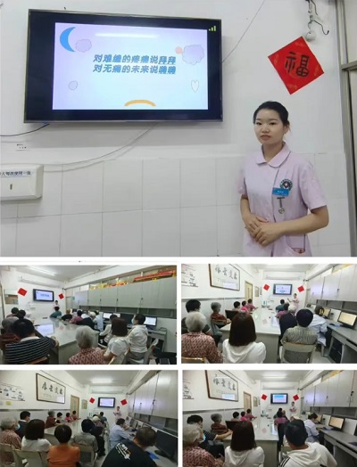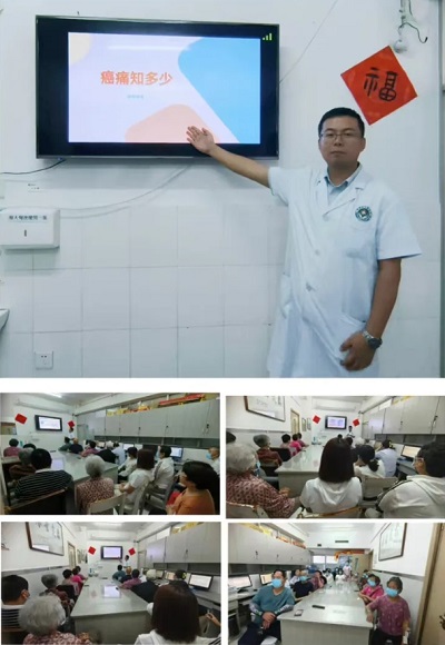 護士長馬運俠以播放癌痛科普視頻的方式,通過臨床疼痛案例深入淺出地將癌痛防治知識分享給大家,現場與患者進行了“話療”,消除他們的緊張情緒,幫助他們樹立抗擊癌痛的信心,科學的防癌抗癌,受到患者及家屬的一致好評。