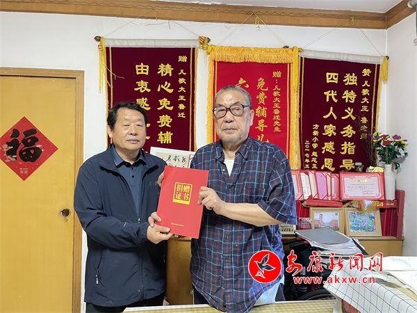 本網(wǎng)訊(通訊員 阿龍 培華)全國聞名的西安兒歌大王魯遷先生,積極響應安康市圖書館、安康市書香少兒讀書會“我為留守兒童捐圖書”的倡議,于6日4日捐贈個人著作及私人藏書157冊。安康市書香少兒讀書會負責人登門致謝,并頒發(fā)《捐贈證書》。