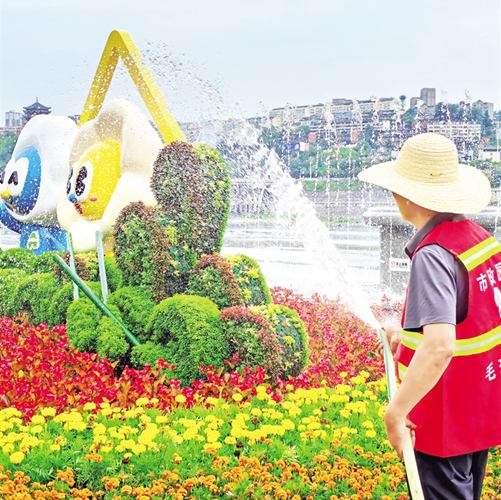 “我們每天投入7臺灑水車,日澆水量260余噸,并根據(jù)綠植苗木耐旱程度,加大澆水力度,延長澆水時間,應澆盡澆,不留死角,確保澆水質(zhì)量。同時,對無澆灌系統(tǒng)覆蓋、車輛無法到達的綠地,由人工牽管澆灌,確保綠化澆灌全覆蓋,抗旱保綠出實效。”綠化抗旱防災黨員突擊隊代表龔晨曦介紹。