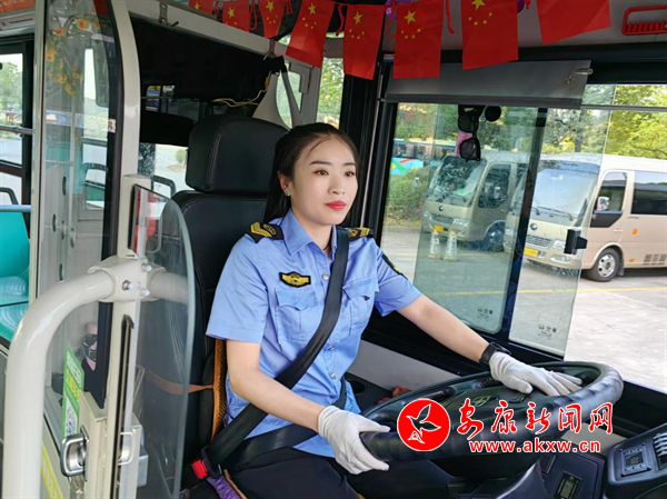 安康公交18路駕駛員王靜正在運營途中