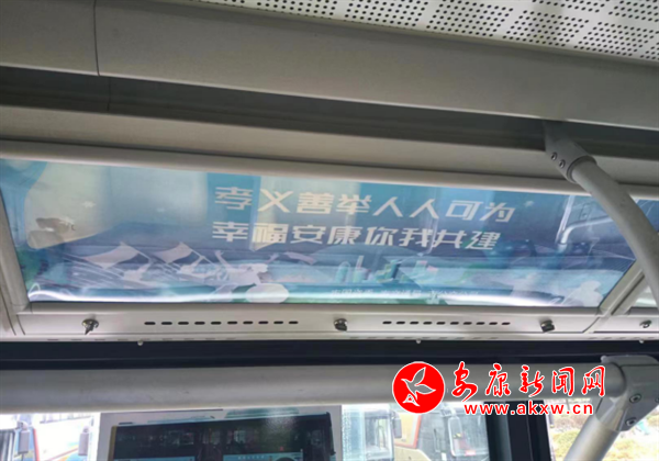 走進安康城區(qū)7路公交車廂,印有“孝義善舉人人可為 幸福安康你我共建”等標語映入眼簾,車廂內的公益廣告宣傳氛圍濃厚,將孝義善舉潛移默化地浸潤到乘客心底。