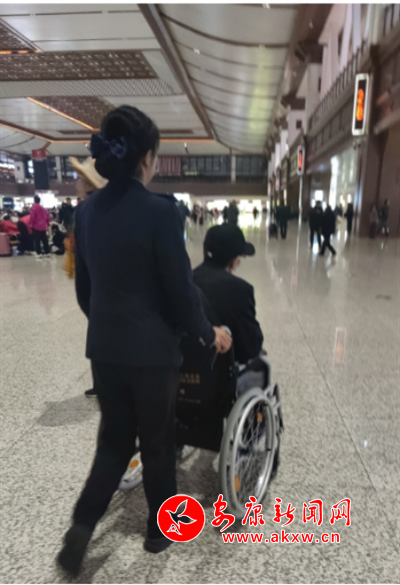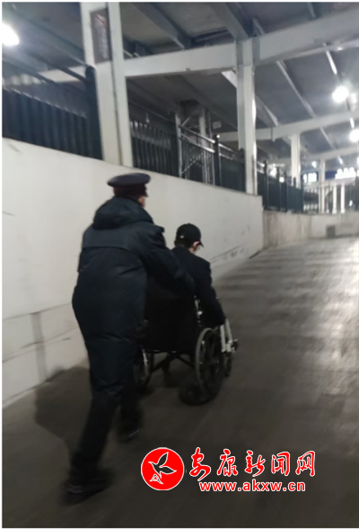 本網(wǎng)訊(通訊員 毛明雪)11月18日,陳先生在西安省城醫(yī)院化療出院后,訂了晚上從西安回至安康的T248次列車12車。在候車廳陳先生病痛難忍,行動(dòng)不便,無(wú)法正常檢票進(jìn)站。眼看人們紛紛檢票進(jìn)站了,陳先生十分著急,陪同陳先生的家人抱著試著看的心態(tài)向檢票處的工作人員說(shuō)明情況,工作人員立刻用對(duì)講服務(wù)系統(tǒng)為陳先生安排了專職工作人員,工作人員用輪椅推著陳先生經(jīng)過(guò)綠色通道送至12車。
