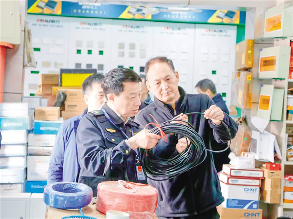 執(zhí)法人員對電線電纜企業(yè)進行檢查