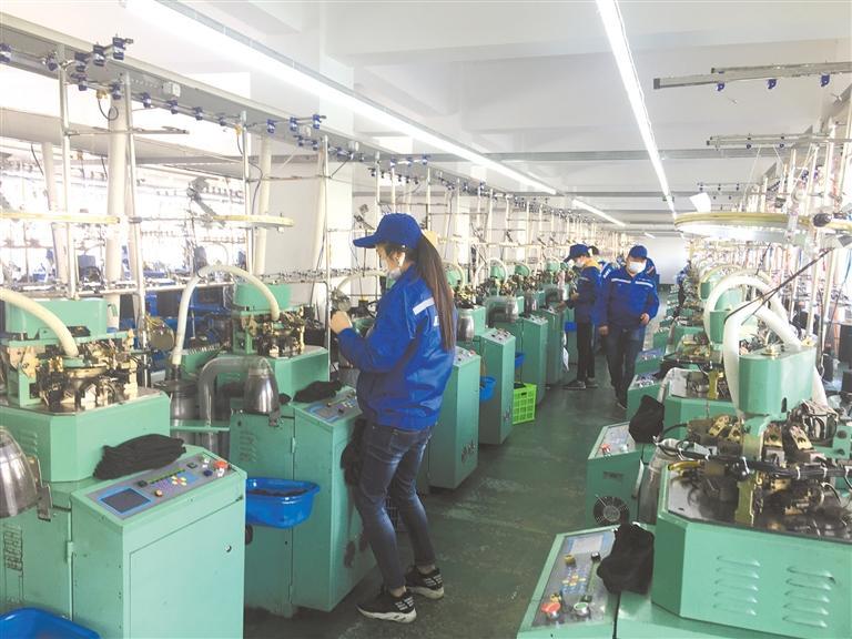 裝上棉紗、調(diào)好數(shù)據(jù)、按下開(kāi)關(guān),只見(jiàn)織襪機(jī)齒輪開(kāi)始飛速運(yùn)轉(zhuǎn)、針筒反復(fù)運(yùn)動(dòng)……不到3分鐘便有了襪子的雛形。次日一早,負(fù)責(zé)縫頭的農(nóng)戶便會(huì)上門(mén)取走襪胚,進(jìn)行下一……
