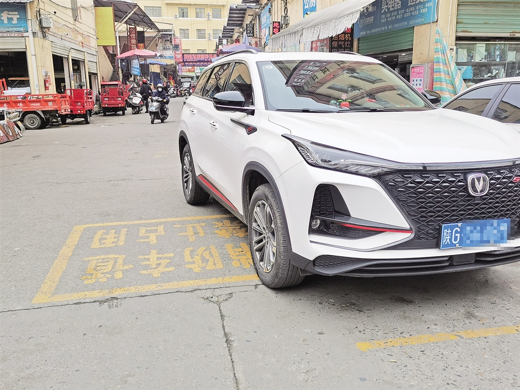 三橋批發(fā)市場內(nèi),一輛白色小轎車停放在消防車道標識之上