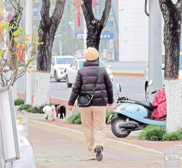 12月21日,在安康大劇院附近,有市民遛狗不牽繩。記者 潘潤生 攝……