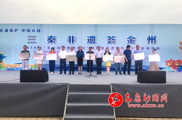 活動啟動儀式上,安康市政府副市長楊淼致辭,省文化和旅游廳副巡視員崔天民宣布全省“文化和自然遺產(chǎn)日”非遺宣傳展示主會場活動啟動,相關(guān)領(lǐng)導(dǎo)向安康市第二批市級非遺生產(chǎn)性保護(hù)示范單位和基地授牌。