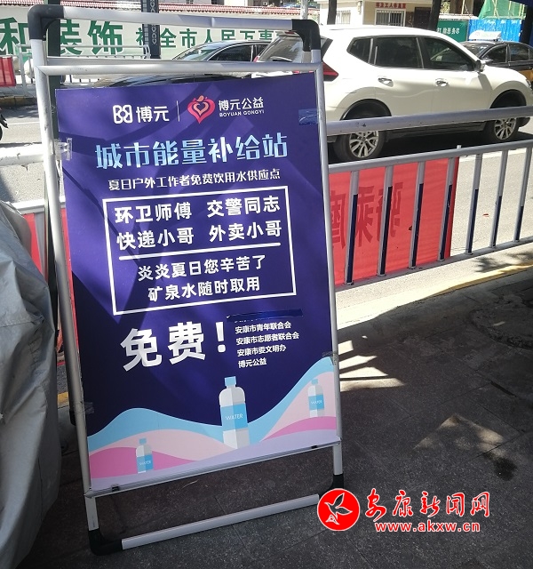 據(jù)了解,此次活動從7月22日陸續(xù)展開,至8月31日結(jié)束,愛心冰柜投放8個地點,分別是博元幸福城售樓部、高新管委會門口、高新幼兒園門口、江北安康濱江大道(扶貧開發(fā)局對面)、影劇院、大橋路(信合廣場對面)、安康中學(xué)(衛(wèi)校十字)、大千印象城,礦泉水每天每個點投放8箱左右。