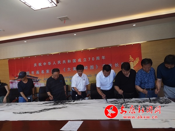 據(jù)悉,《大美秦嶺》千米畫卷從今年四月份開始繪制,西安、北京、南京、蘇州、嘉興、合肥、上海等城市的許多書畫名家共同參與創(chuàng)作,目前已繪制二百余米。國畫《大美秦嶺》千米長卷將記錄大秦嶺從新中國建國到改革開放40年的歲月變遷,是祖國建國70周年的獻(xiàn)禮作品。