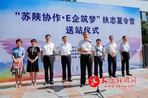 本網(wǎng)訊(記者 張世虎)8月12日下午,“蘇陜協(xié)作·E企筑夢(mèng)”扶志夏令營(yíng)送站儀式在安康火車站舉行,來自我市的30名優(yōu)秀學(xué)生和5位老師踏上奔赴南京列車,將開啟一段美好的研學(xué)之旅。省委網(wǎng)信辦副主任黃永宏,安康市委常委、宣傳部長(zhǎng)羅雪劍出席并講話。