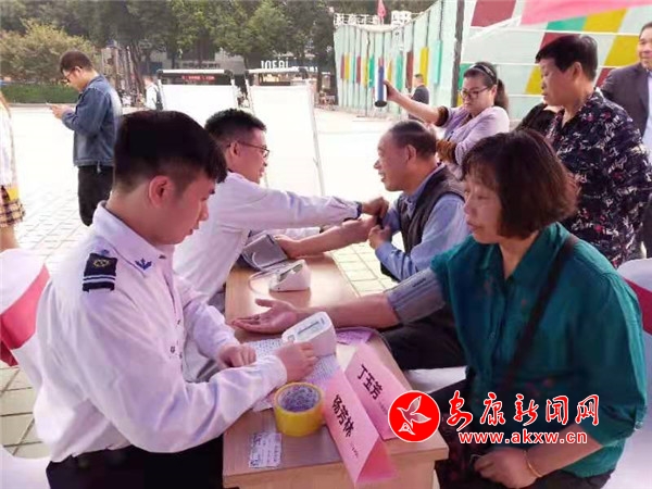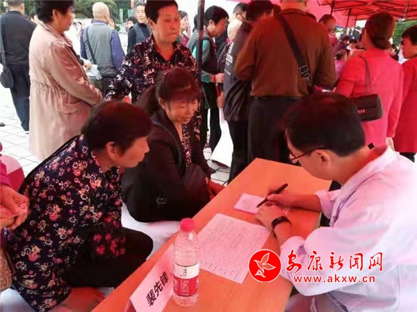 救心義診活動開始后,參展醫(yī)院工作人員現(xiàn)場發(fā)放宣傳單,提供專家義診咨詢,并為市民免費(fèi)測血壓,測血糖,義診免費(fèi)贈藥;顒蝇F(xiàn)場測血壓、血糖,領(lǐng)取贈藥的群眾排起長隊,醫(yī)護(hù)人員主動攙扶行動不便的老人,耐心進(jìn)行心血管疾病的防治及健康生活常識指導(dǎo)。