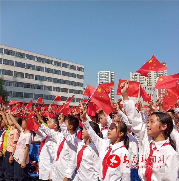初二九班的王運(yùn)城作為此次活動(dòng)中的旗手,他說(shuō):“今天,能站在這里我感到很自豪,明天就是祖國(guó)母親的生日,我們?cè)诖双I(xiàn)歌,祝愿祖國(guó)母親永遠(yuǎn)繁榮昌盛。”bkY安康新聞網(wǎng)