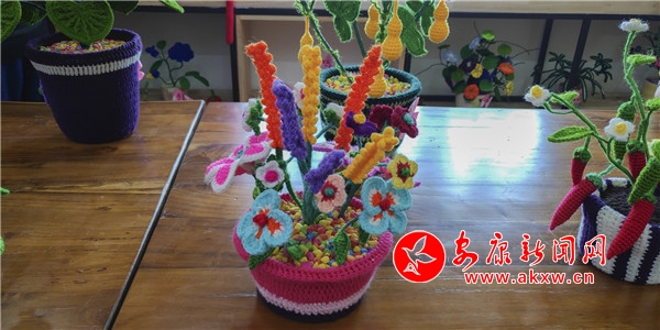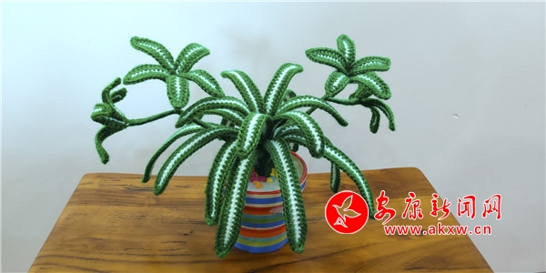 走進旬陽縣城關(guān)鎮(zhèn)老城社區(qū),一個專為老年人打造的 “巧手坊”很是吸引人。溫馨的燈光,溫暖的房間,桌子上、架子上擺滿了百合、菊花、鴻運當(dāng)頭等手工藝編織品,都是普通的毛線編織而成。若不仔細看,這些“綠植”和“盆栽”足能以假亂真。