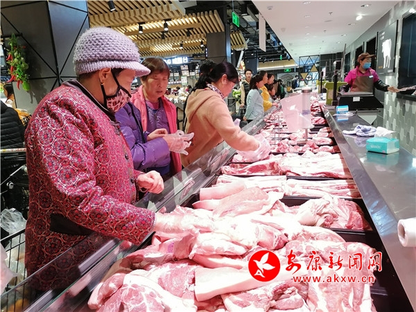本網(wǎng)訊(實(shí)習(xí)記者 馬娟)“特價(jià)前腿肉23.8元一斤,歡迎新老顧客前來選購(gòu)。”喜盈門超市廣播著特惠價(jià)格信息,很多顧客聞聲而來,挑選豬肉。“五花肉、前腿肉的價(jià)格比昨天降了3塊錢,這星期豬肉價(jià)格慢慢降下來了。”生鮮區(qū)的員工許連琴說。