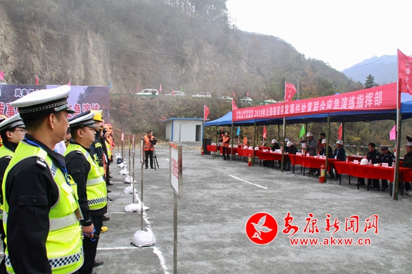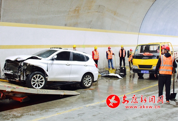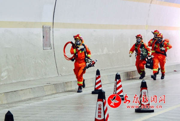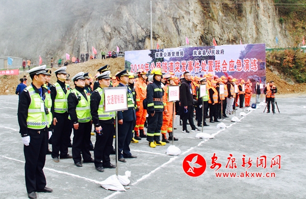 本網(wǎng)訊(記者 張喬)“報告,接110指令,541國道151KM+000M處柏枝埡隧道內(nèi)發(fā)生一起小轎車與危險化學(xué)品運輸車發(fā)生追尾碰撞交通事故,可能發(fā)生危化品泄露泄露、燃燒爆炸和人員傷亡”。 為提高國省干線公路隧道突發(fā)事件應(yīng)急處置能力,檢驗干線公路突發(fā)事件應(yīng)急預(yù)案可行性,11月22日,安康公路管理局2019年度干線公路隧道救援應(yīng)急演練在G541線K151+000嵐皋縣柏枝埡隧道舉行。