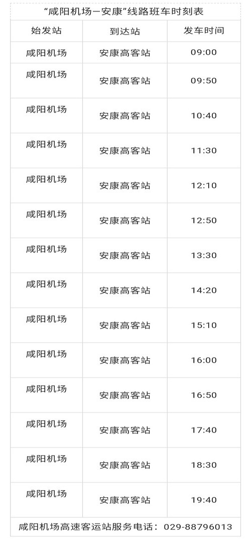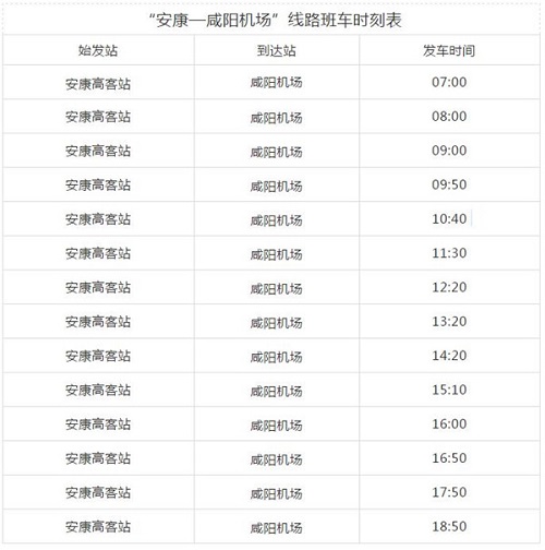 自2019年1月10日起,“安康—咸陽機場”線路的發(fā)車時間也做出了更改,具體如下: