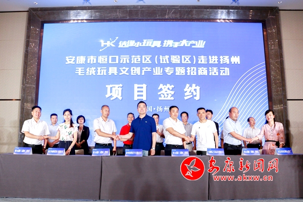 推介會上,恒口示范區(qū)和市直相關(guān)部門分別就營商環(huán)境、毛絨玩具產(chǎn)業(yè)政策、金融支持政策及重點項目作了推介。恒安玩具有限公司,安康市毛絨玩具文創(chuàng)產(chǎn)業(yè)協(xié)會負(fù)責(zé)人和揚州市工商聯(lián)、市毛絨玩具行業(yè)協(xié)會、企業(yè)代表分別發(fā)言,F(xiàn)場簽約項目16個,總金額額18.5億元,涵蓋毛絨玩具文創(chuàng)產(chǎn)業(yè)創(chuàng)意設(shè)計、生產(chǎn)加工、倉儲物流和運營策劃等全產(chǎn)業(yè)鏈條和醫(yī)療康養(yǎng)、現(xiàn)代教育等諸多領(lǐng)域。