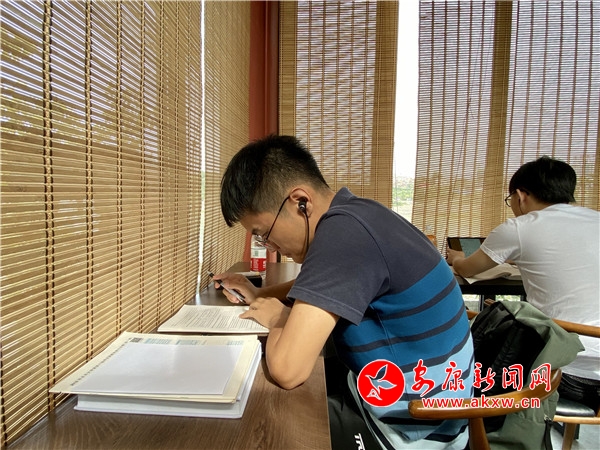 正在龍舟文化園閱讀吧內(nèi)看書的趙浩文是中南大學(xué)大一的學(xué)生,今年暑假他常常泡在閱讀吧學(xué)習(xí),“我一般早上八點(diǎn)鐘過來學(xué)習(xí)看書,中午吃個(gè)飯,然后看書看到下午六點(diǎn)多回家。每天都在學(xué)習(xí)英語知識以及預(yù)習(xí)大二的一些課程,感覺在閱讀吧學(xué)習(xí)很安靜,而且里面裝有空調(diào),環(huán)境好。現(xiàn)在有些場所恢復(fù)了24小時(shí)的自助服務(wù),也滿足了我們夜間讀書的需求。閱讀吧是我們這些學(xué)生學(xué)習(xí)和備考的理想場所。”