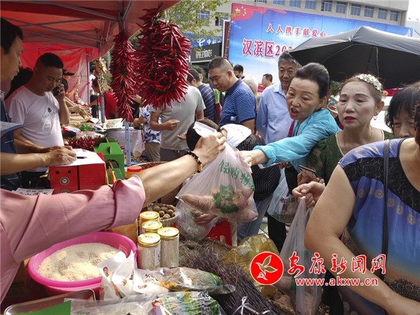 本網(wǎng)訊(記者 張世虎 通訊員 張昊 吳亞君)為深入貫徹落實(shí)中省市消費(fèi)扶貧工作部署要求,進(jìn)一步提升漢濱全區(qū)消費(fèi)扶貧工作質(zhì)量水平,9月15日,漢濱區(qū)“消費(fèi)扶貧月”活動(dòng)啟動(dòng)儀式暨扶貧產(chǎn)品采購活動(dòng)在漢濱區(qū)中心廣場啟動(dòng)。來自漢濱區(qū)各級幫扶單位負(fù)責(zé)人,各鎮(zhèn)辦主要負(fù)責(zé)人,漢濱區(qū)消費(fèi)扶貧領(lǐng)導(dǎo)小組各成員單位主要負(fù)責(zé)人,貧困村第一書記等共計(jì)1300余人參加活動(dòng)。