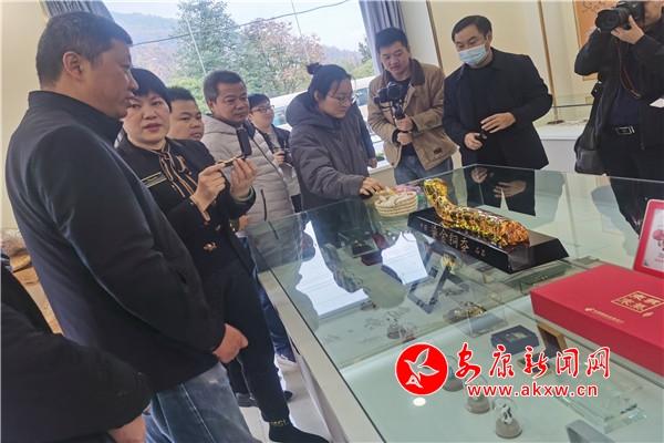 采訪團一行首先到達安康市石泉縣池河鎮(zhèn),該鎮(zhèn)著力圍繞“鎏金銅蠶”打造“金蠶文化。其中,“鎏金銅蠶”文創(chuàng)產(chǎn)品展銷中心是陜西歷史博物館授權(quán)掛牌的全省首家縣級鎏金銅蠶文創(chuàng)產(chǎn)品展示推廣中心,也是國內(nèi)首家以鎏金銅蠶文化為內(nèi)核打造的文創(chuàng)展銷平臺。明星旅游村屬于金蠶小鎮(zhèn)打造的農(nóng)桑體驗版塊,該村依托蠶桑產(chǎn)業(yè)和鎏金銅蠶文化,積極探索“農(nóng)旅融合”“文旅融合”模式,大力開發(fā)鄉(xiāng)村旅游。目前,已累計投資8000萬元,建成桑園6000余畝,種植各類桑品種1000余種;建成桑品種博覽園、果桑采摘園、特色民居、桑海小木屋、農(nóng)家樂、空中漂流、山地摩托、天空之鏡、桑海酒吧等一大批旅游體驗項目,并配套建設(shè)了桑棲旅游環(huán)線、供水系統(tǒng)、旅游公廁、生態(tài)停車場、標識導(dǎo)視、鄉(xiāng)村大舞臺等公共服務(wù)設(shè)施。