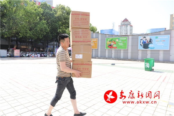 大熱天搬運(yùn)四箱貨物的店主