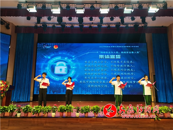 活動現(xiàn)場,團(tuán)市委為7名來自機(jī)關(guān)、學(xué)校、企業(yè)、媒體、公安、西部計(jì)劃等不同年齡階段、不同行業(yè)的“安康共青團(tuán)網(wǎng)絡(luò)安全公益宣傳青年大使”代表頒發(fā)了聘書。共青團(tuán)陜西省委副書記賈琳通過網(wǎng)絡(luò)寄語全省廣大青少年?duì)幾鼍W(wǎng)絡(luò)環(huán)境的維護(hù)者、網(wǎng)絡(luò)安全的推動者和網(wǎng)絡(luò)正能量的傳播者。青年代表帶領(lǐng)現(xiàn)場全體學(xué)生作出“清朗網(wǎng)絡(luò)空間 看我青年力量”的宣誓承諾,號召廣大青少年守法自律,弘揚(yáng)正氣,文明上網(wǎng),拒絕侵害,爭做推動網(wǎng)絡(luò)強(qiáng)國發(fā)展的新生力量。