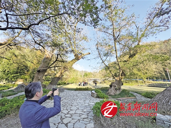 隨后采訪團(tuán)驅(qū)車駛?cè)腚p嶂村,一眼看見(jiàn)高大的“麻柳”古樹(shù)。據(jù)悉,這些古樹(shù)一共16棵,樹(shù)齡約500年。古樹(shù)的枝干或挺拔如衛(wèi)士,或斜臥似老者,繁密的枝葉織成巨傘,將整片草坪籠在樹(shù)蔭里。樹(shù)下游客紛紛舉起相機(jī)拍照,快門聲伴著歡聲笑語(yǔ)。kSt安康新聞網(wǎng)