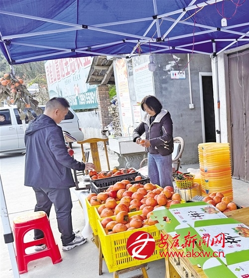游客在城關(guān)鎮(zhèn)絲銀壩村選購(gòu)柿子 kSt安康新聞網(wǎng)