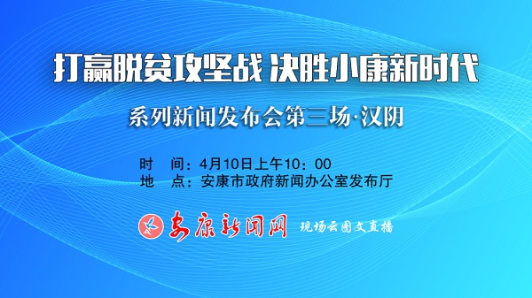 本網(wǎng)訊 4月10日(周五)上午10:00,“打贏脫貧攻堅戰(zhàn) 決勝小康新時代”系列發(fā)布會第三場·漢陰專場在安康市政府新聞辦公室發(fā)布廳舉行,漢陰縣委書記周永鑫……