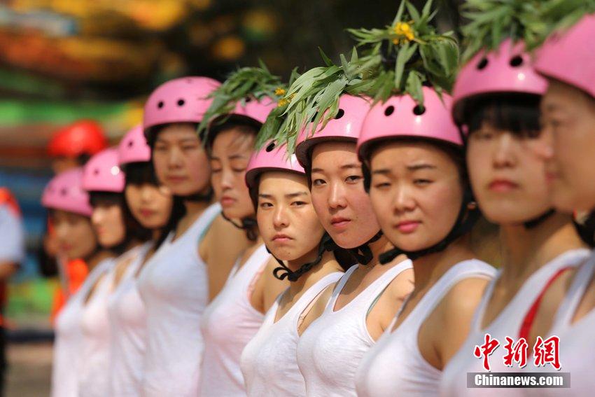 4月29日,河南省三門峽市女子漂流救援隊員佩戴偽裝成花草的視頻記錄儀,對漂流河道進行安全檢查。該視頻記錄儀可放置在頭頂對全身進行監(jiān)控、也可以放置在胸部、下身等處對局部進行監(jiān)控。據(jù)了解,這種裝備是為了防止少數(shù)故意落水的男游客,對女救援隊員動手動腳的不文明行為。圖片來源:CFP視覺中國3Up安康新聞網(wǎng)