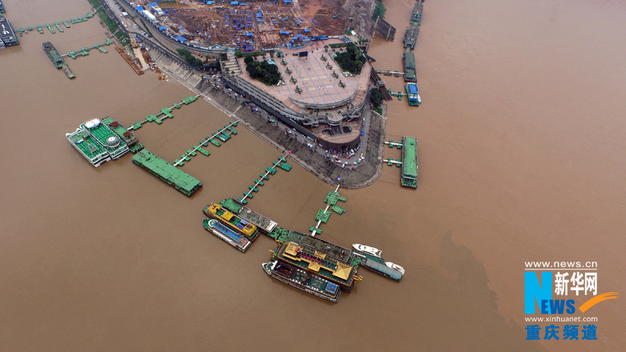 7月1日,今年長江、嘉陵江最大洪峰過境后的重慶朝天門碼頭。 本組圖片由新華網(wǎng)新聞無人機(jī)隊(duì)拍攝tsz安康新聞網(wǎng)