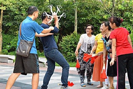 小伙創(chuàng)意無(wú)人機(jī)送月餅劵給女友 遭大媽哄搶
