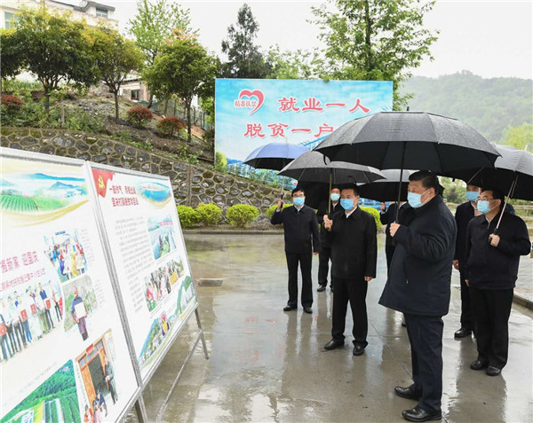 習近平總書記21日來到陜西省安康市平利縣老縣鎮(zhèn),在錦屏社區(qū)、鎮(zhèn)衛(wèi)生院、中心小學和茶園考察當?shù)孛撠毠缘惹闆r。rYr安康新聞網