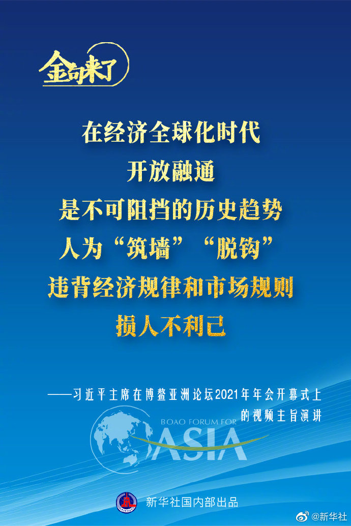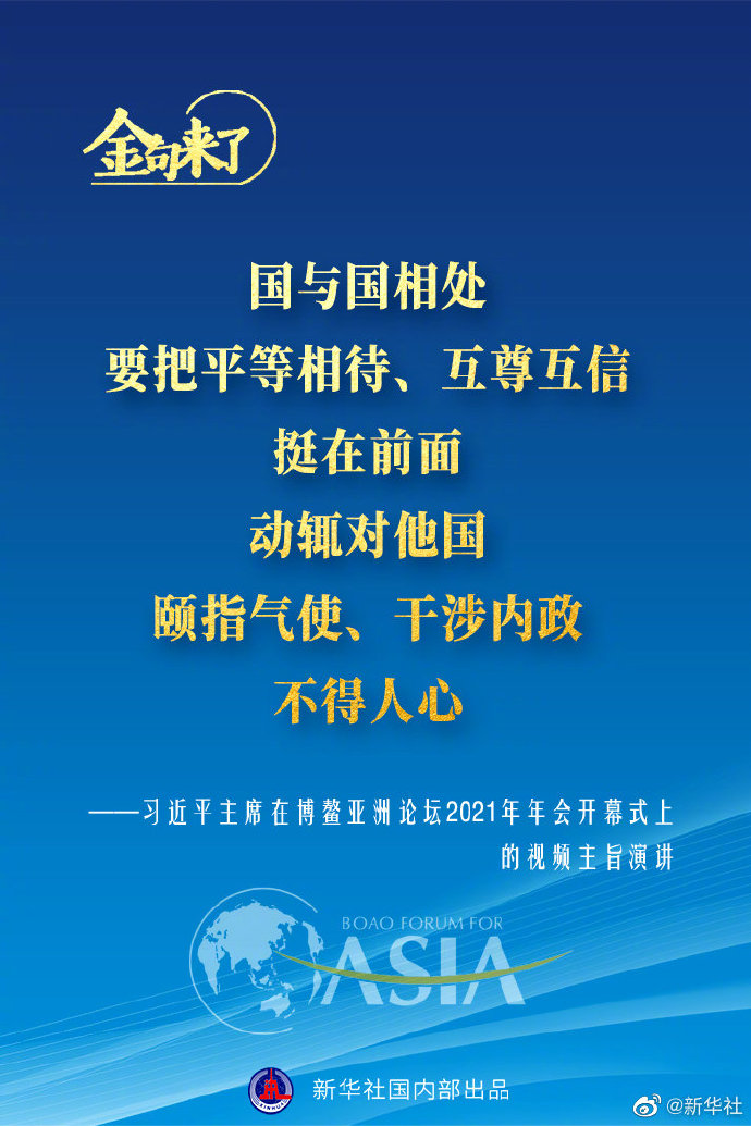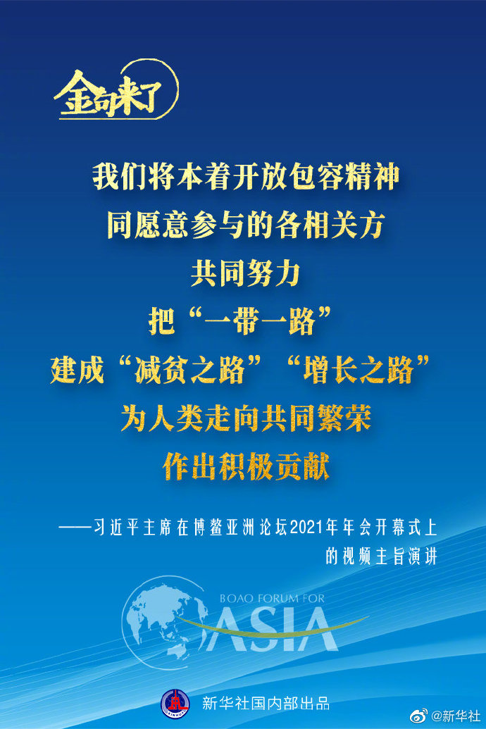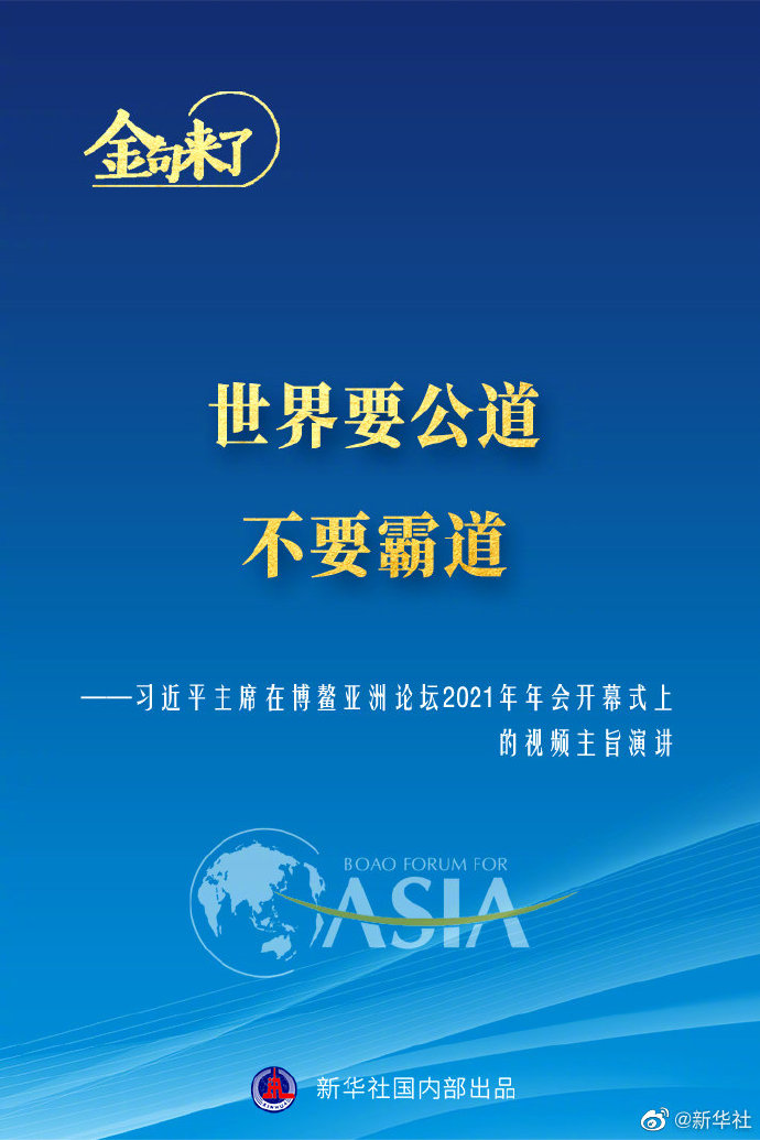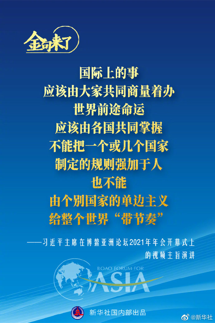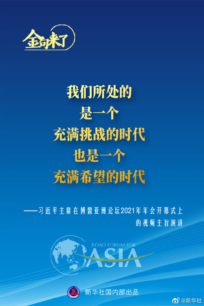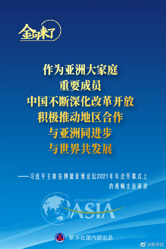 4月20日,習(xí)近平主席在博鰲亞洲論壇2021年年會開幕式上以視頻方式發(fā)表主旨演講。一起來看演講金句! JDu安康新聞網(wǎng)