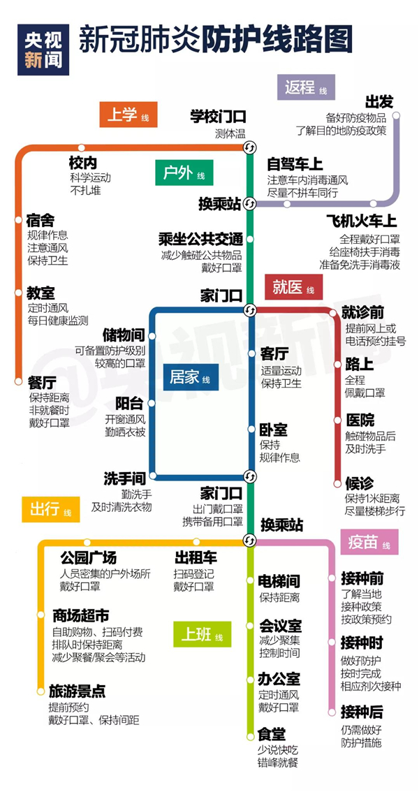 開學(xué)臨近,疫情防控又到了關(guān)鍵時期,返程路上、校園里、外出途中該如何做好防護(hù)?這張“線路圖”給你答案。