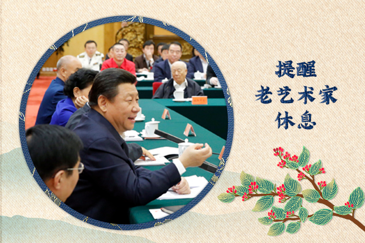 2014年10月15日,習(xí)近平總書記主持召開文藝工作座談會(huì),媒體捕捉到這樣一個(gè)現(xiàn)場(chǎng)細(xì)節(jié)。當(dāng)文藝界代表們發(fā)言結(jié)束,總書記準(zhǔn)備發(fā)表講話時(shí),他望了望90歲高齡的中國(guó)紅樓夢(mèng)學(xué)會(huì)名譽(yù)會(huì)長(zhǎng)馮其庸先生,隨后對(duì)大家說:“今天出席座談會(huì)的不少老藝術(shù)家年事已高,大家如果累了,就到休息室休息或者走動(dòng)走動(dòng)。”
