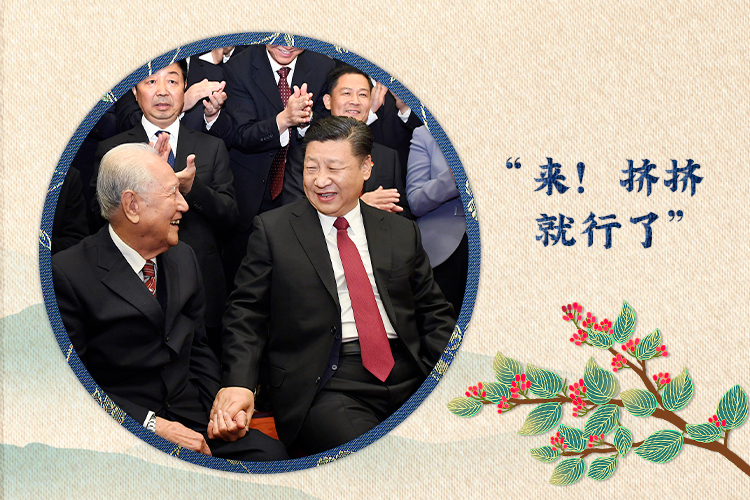 總書記拉著他們的手,請(qǐng)兩位老人坐到自己身邊來,兩人執(zhí)意推辭,總書記一再邀請(qǐng):“來!擠擠就行了,就這樣。”自然而然的舉動(dòng),正是總書記尊老敬賢的真情流露。