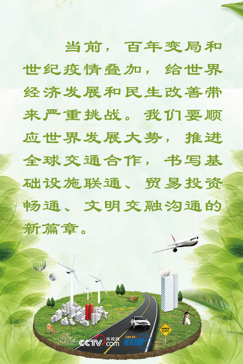 10月14日,習近平主席以視頻方式出席第二屆聯(lián)合國全球可持續(xù)交通大會開幕式并發(fā)表題為《與世界相交 與時代相通 在可持續(xù)發(fā)展道路上闊步前行》的主旨講話,深入分析當前世界形勢,提出五點倡議,為推進全球交通合作貢獻中國智慧。