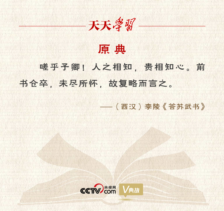 信中李陵為自己當(dāng)年投降匈奴的行為進(jìn)行辯白,并對蘇武發(fā)出了“人之相知,貴相知心”的慨嘆,認(rèn)為人與人之間的相互理解,最可貴的是彼此心靈相通。