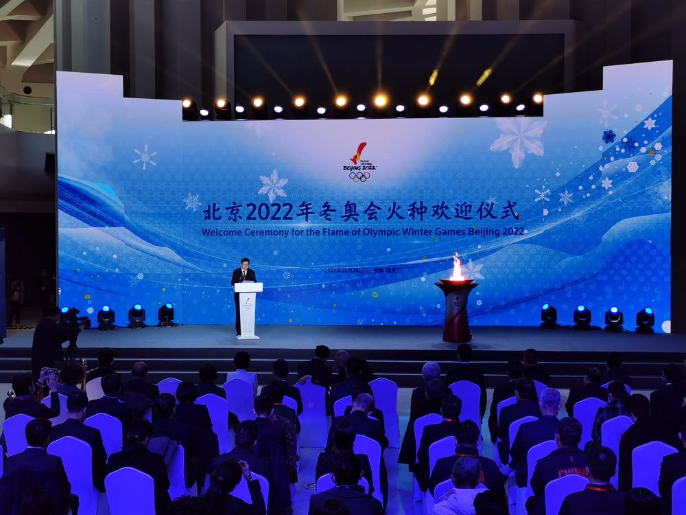⬆️北京市副市長(zhǎng)、北京冬奧組委執(zhí)行副主席張建東在火種歡迎儀式上發(fā)言。