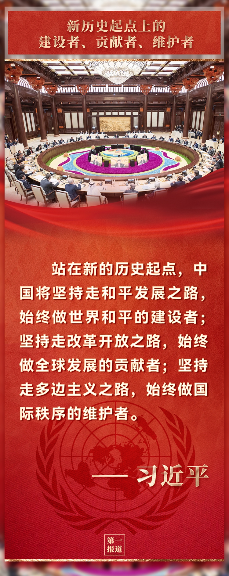 追昔撫今,鑒往知來(lái)。站在新的歷史起點(diǎn),中國(guó)將堅(jiān)持走和平發(fā)展之路,始終做世界和平的建設(shè)者;堅(jiān)持走改革開(kāi)放之路,始終做全球發(fā)展的貢獻(xiàn)者;堅(jiān)持走多邊主義之路,始終做國(guó)際秩序的維護(hù)者。