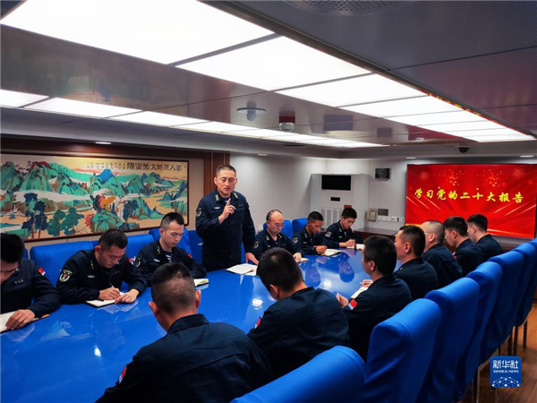 中共中央總書記、國家主席、中央軍委主席習(xí)近平24日下午出席軍隊領(lǐng)導(dǎo)干部會議時發(fā)表的重要講話,在解放軍和武警部隊引起強烈反響。這是東部戰(zhàn)區(qū)海軍護衛(wèi)艦支隊迅速組織官兵學(xué)習(xí)習(xí)主席重要講話(10月25日攝)。新華社發(fā)(劉祎瑋 攝)