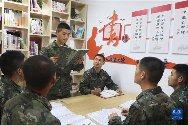 中共中央總書記、國家主席、中央軍委主席習(xí)近平24日下午出席軍隊領(lǐng)導(dǎo)干部會議時發(fā)表的重要講話,在解放軍和武警部隊引起強烈反響。這是南部戰(zhàn)區(qū)陸軍第74集團軍某合成旅“大渡河連”組織官兵認(rèn)真學(xué)習(xí)習(xí)主席重要講話(10月25日攝)。新華社發(fā)(薛健 攝)