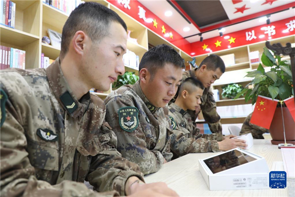 中共中央總書記、國家主席、中央軍委主席習(xí)近平24日下午出席軍隊領(lǐng)導(dǎo)干部會議時發(fā)表的重要講話,在解放軍和武警部隊引起強烈反響。這是新疆軍區(qū)奧爾托蘇邊防連官兵在圖書室認(rèn)真學(xué)習(xí)習(xí)主席重要講話(10月25日攝)。新華社發(fā)(劉南松 攝)