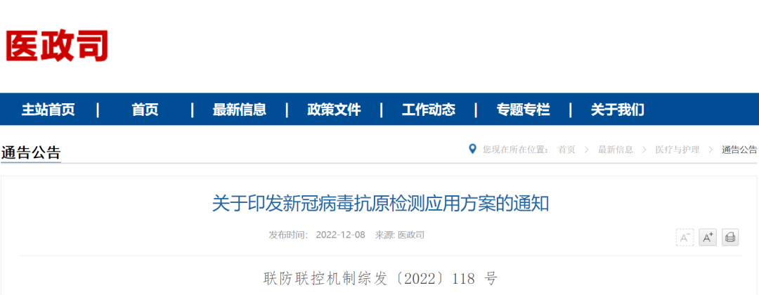 為進(jìn)一步優(yōu)化新冠病毒檢測(cè)策略,做好防控工作,國(guó)務(wù)院應(yīng)對(duì)新型冠狀病毒肺炎疫情聯(lián)防聯(lián)控機(jī)制綜合組制定了《新冠病毒抗原檢測(cè)應(yīng)用方案》,現(xiàn)印發(fā)給你們,請(qǐng)認(rèn)真組織實(shí)施。