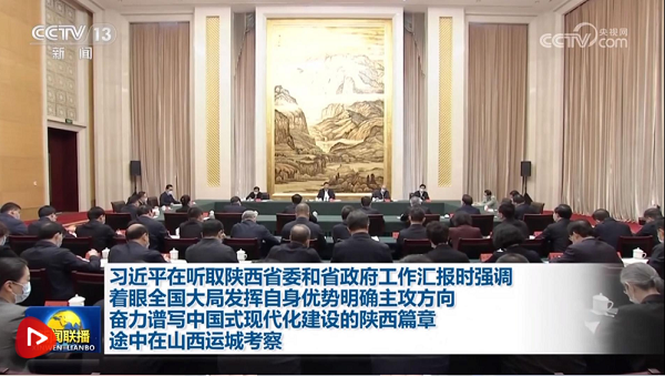 5月17日,習近平在西安主持中國-中亞峰會前夕,專門聽取陜西省委和省政府工作匯報,省委書記趙一德匯報,省長趙剛等參加匯報會。習近平發(fā)表了重要講話,對陜西各項工作取得的成績給予肯定。