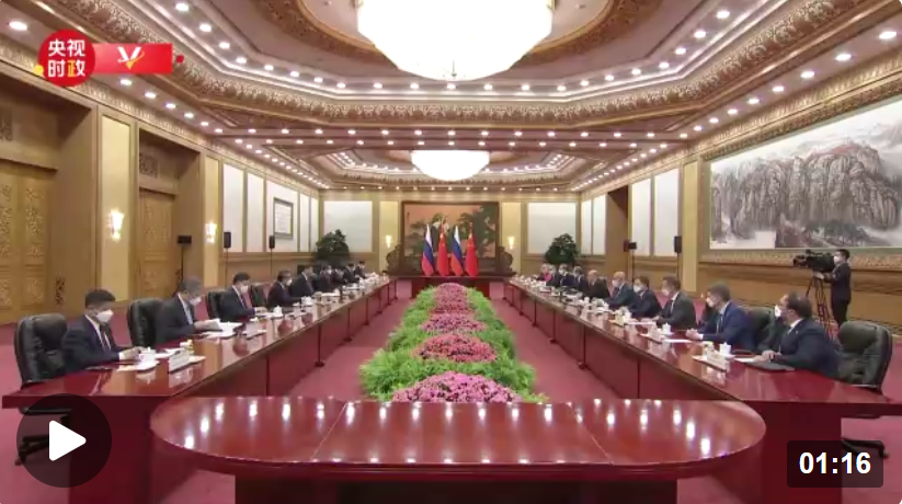 米舒斯京說:“尊敬的習近平主席,首先請允許我向您轉達俄羅斯聯(lián)邦總統(tǒng)普京的親切問候和良好祝愿。今年3月份,他同您在莫斯科舉行的會談至今仍使他倍感親切。我們非常珍視同中國的睦鄰友好合作伙伴關系。”