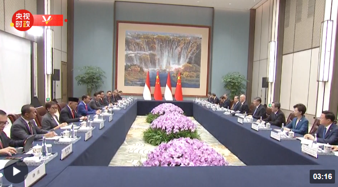習(xí)近平指出,歡迎老朋友佐科總統(tǒng)先生來華出席成都大運(yùn)會(huì)開幕式。去年,我們?cè)?個(gè)多月時(shí)間里實(shí)現(xiàn)互訪,共同開啟兩國(guó)共建命運(yùn)共同體的新篇章。