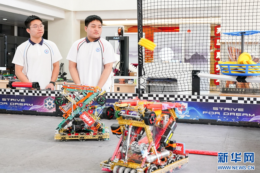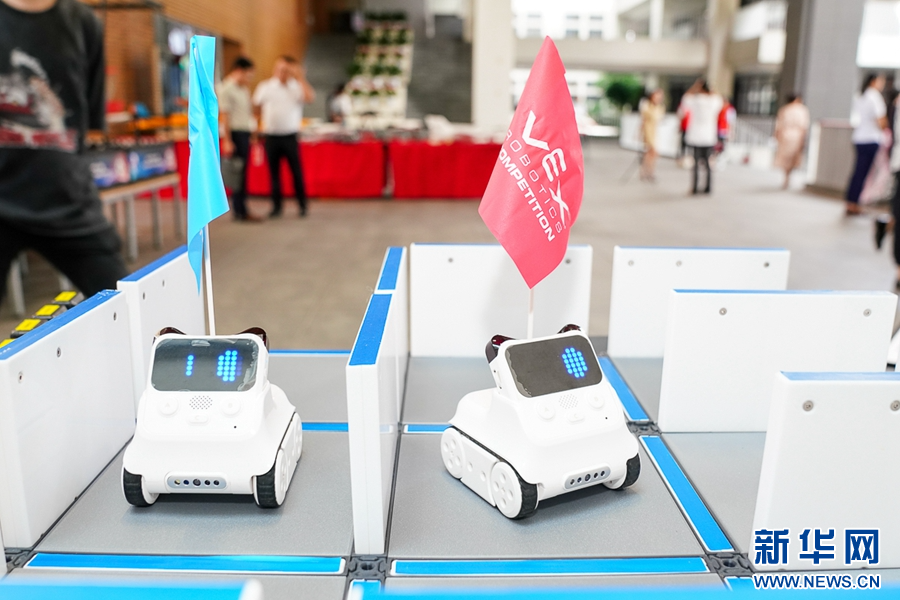 9月12日,福州第三中學(xué),學(xué)生進(jìn)行VEX機(jī)器人競(jìng)賽。新華網(wǎng) 肖和勇 攝